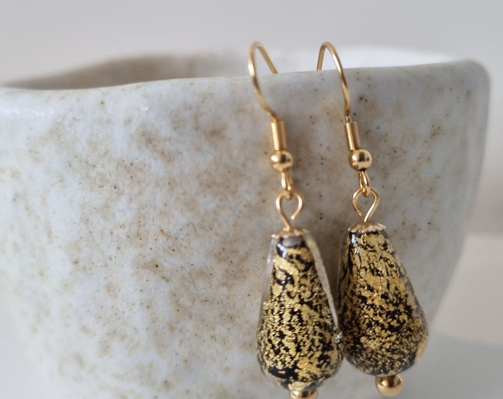 24K Gold Leaf with Freshwater Pearl Dangle Earrings