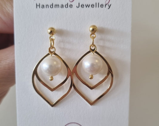 24K Gold Leaf with Freshwater Pearl Dangle Earrings